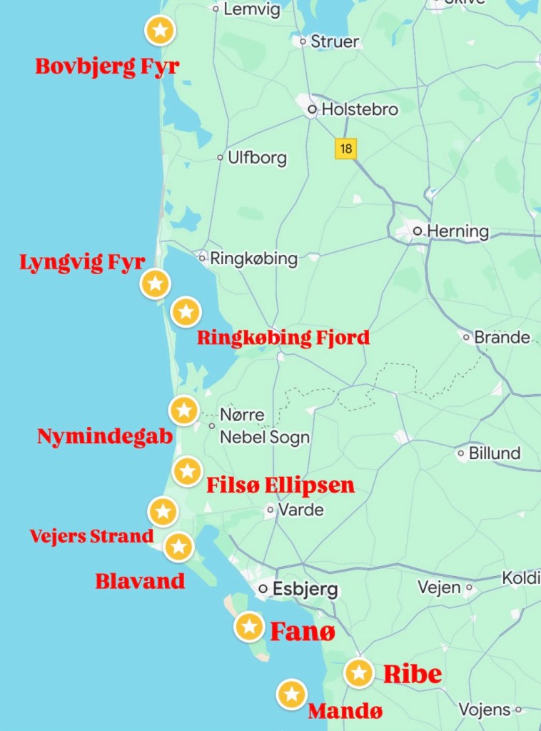 Von Esbjerg aus gelangt man mit der Fähre auf die schöne Insel Fanø. Die Wattenmeerinsel liegt 50 km nördlich von Sylt.