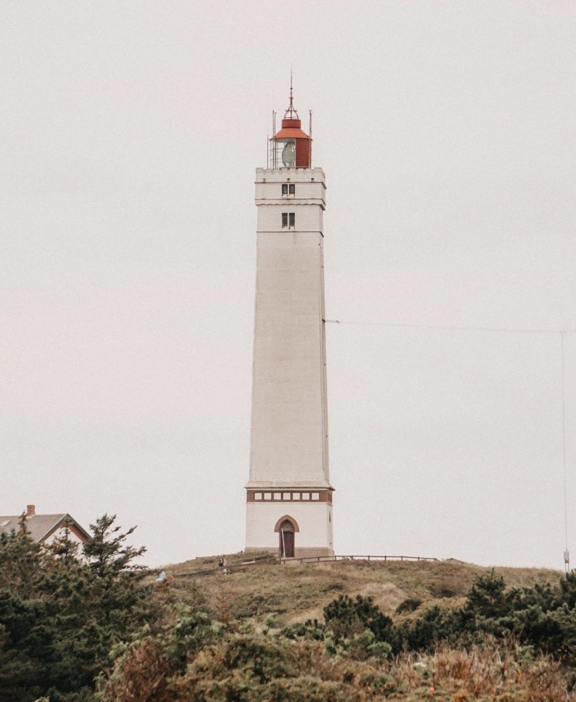 Leuchttürme gibt’s an der dänischen Nordseeküste eine Menge und dieser gehört wohl mit zu den schönsten. Inmitten von Dünen, etwas abseits gelegen, thront er über die Küste.