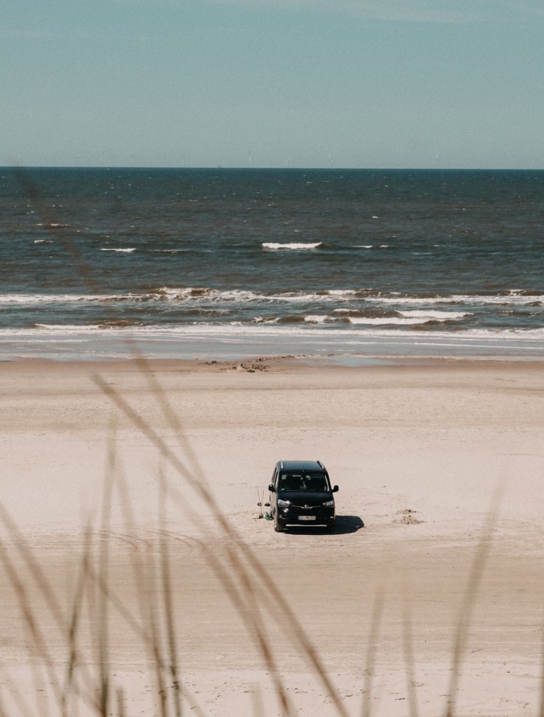 Vejers Strand ist bekannt für seinen scheinbar endlosen Sandstrand und besonders für Vanlifer sehr beliebt, weil man mit dem Auto direkt auf den Strand fahren kann.